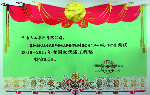 2016-2017年度国家优质工程奖-包钢稀土钢板材有限责任公司2030mm冷轧一部工程