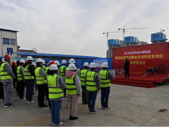為進一步加強建筑工地消防安全管理,有效防范和遏制各類消防安全事故的發生,11月30日,周口市川匯區住建局在渤海公司周口市七一嘉苑項目組織開展第四季度警示教育及消防應急演練現場觀摩活動,川匯區住建局、各在建建筑工地安全負責人及項目部共70余人參加。