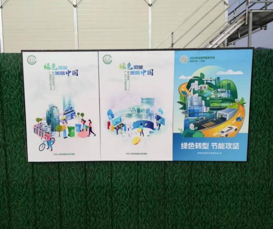 “小標語”營造濃郁宣教氛圍。在施工現場張貼主題標語及海報,廣泛普及節能宣傳周重要意義,傳遞節能降碳理念,提升職工節約資源、保護環境意識,共同營造節能減排、低碳環保良好氛圍。項目部還建立灑水清掃制度,配備灑水車、霧炮等設備,指定專人負責灑水及清掃,讓“綠色轉型,節能攻堅”主題深入人心。