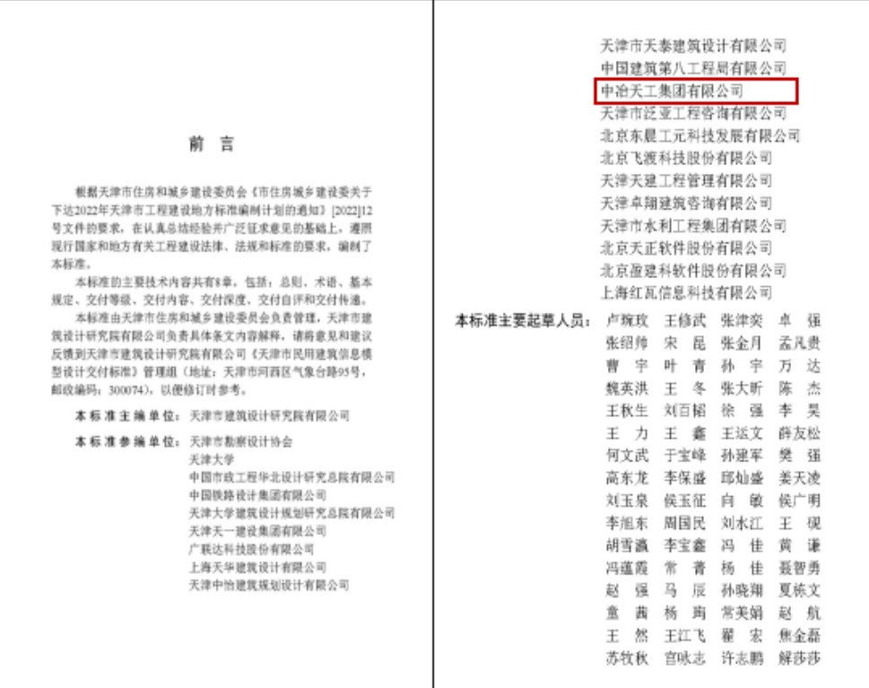 近日,中冶天工參編的《天津市民用建筑信息模型設計交付標準》(DB/T29-319-2024)經天津市住房和城鄉建設委員會批準,正式發布實施。標準的發布實施彰顯了中冶天工在BIM技術領域的綜合實力,增強了天工BIM品牌的影響力和競爭力,為進一步提升中冶天工在BIM領域的引領地位奠定了堅實基礎。