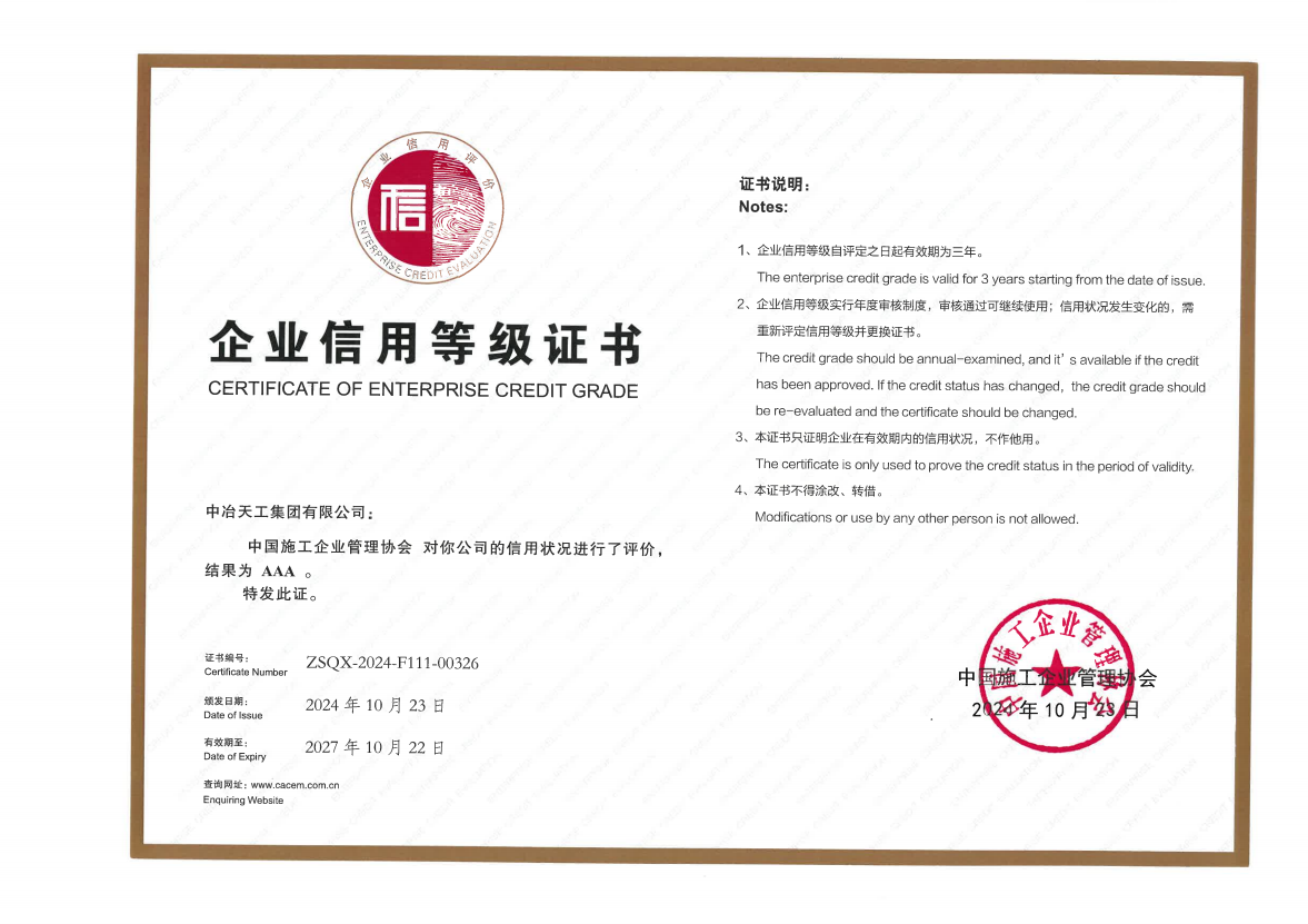 中国施工企业管理协会AAA信用等级证书2024.10.23-2027.10.22