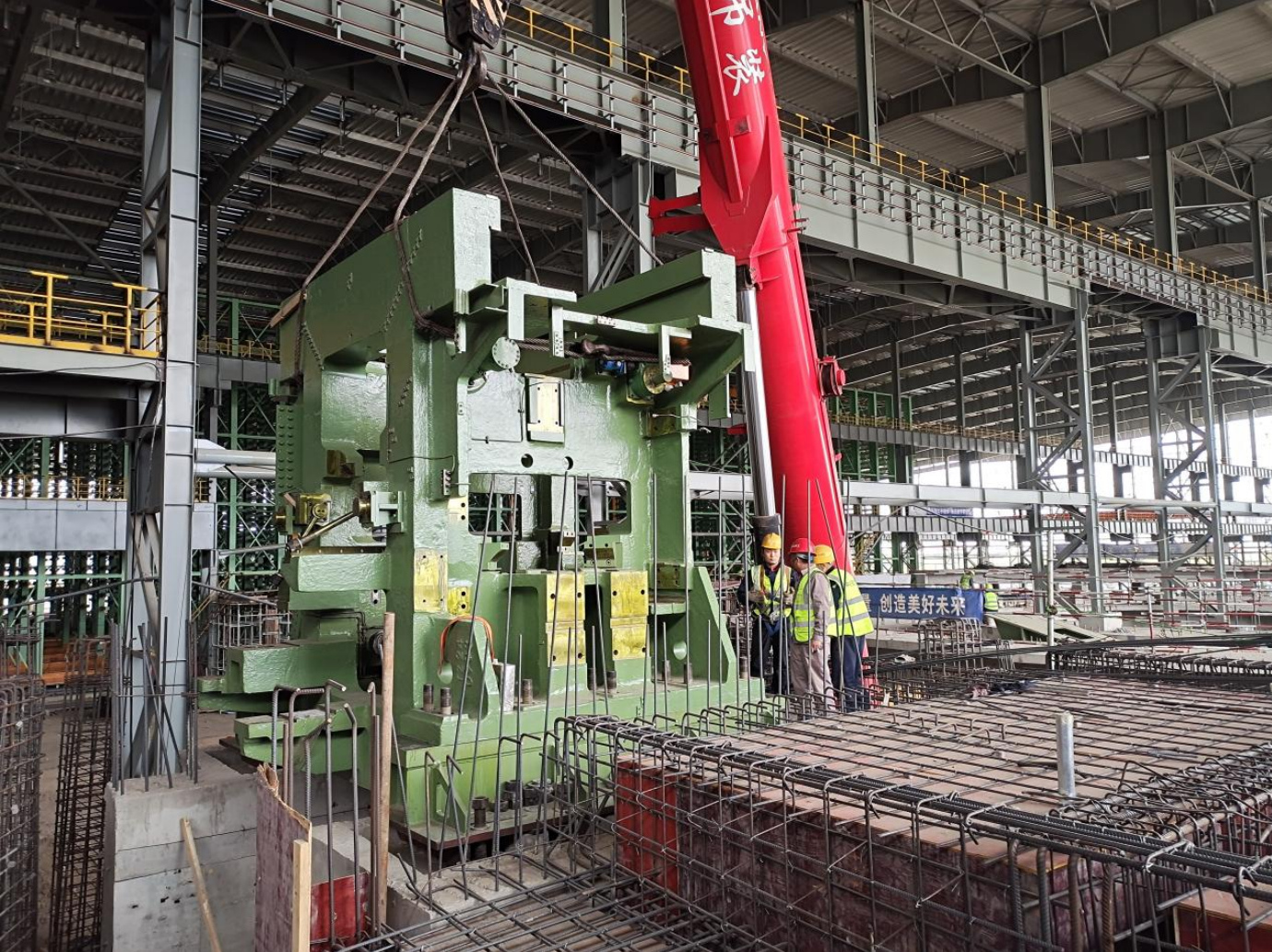 此次吊裝的穿孔機是達力普項目的核心設備之一,其安裝精度和進度直接影響到整個項目的生產效率和產品質量。穿孔機體積龐大、重量驚人,外觀尺寸達4.145*3.435*3.803米,單重49噸,給吊裝工作帶來了巨大的挑戰。面對施工工期緊、設備安裝精度高,現有行車無法滿足吊裝需求等不利影響,項目部超前謀劃、提前布局,花費大量時間精力多次實地勘察現場,組織專家和技術人員進行深入討論、研究,提前做好對吊裝設備的調試、對施工人員的培訓以及對現場安全措施的落實工作。吊裝現場,參戰將士緊密配合,130t汽車吊精準操作,將穿孔機平穩起吊、精準就位。從設備起吊到精準安裝,每一個環節都經過嚴格把控,施工人員憑借精湛的技術和豐富的經驗,克服重重困難,歷時4小時順利完成吊裝任務,得到項目業主、監理、總包等各方一致贊揚。