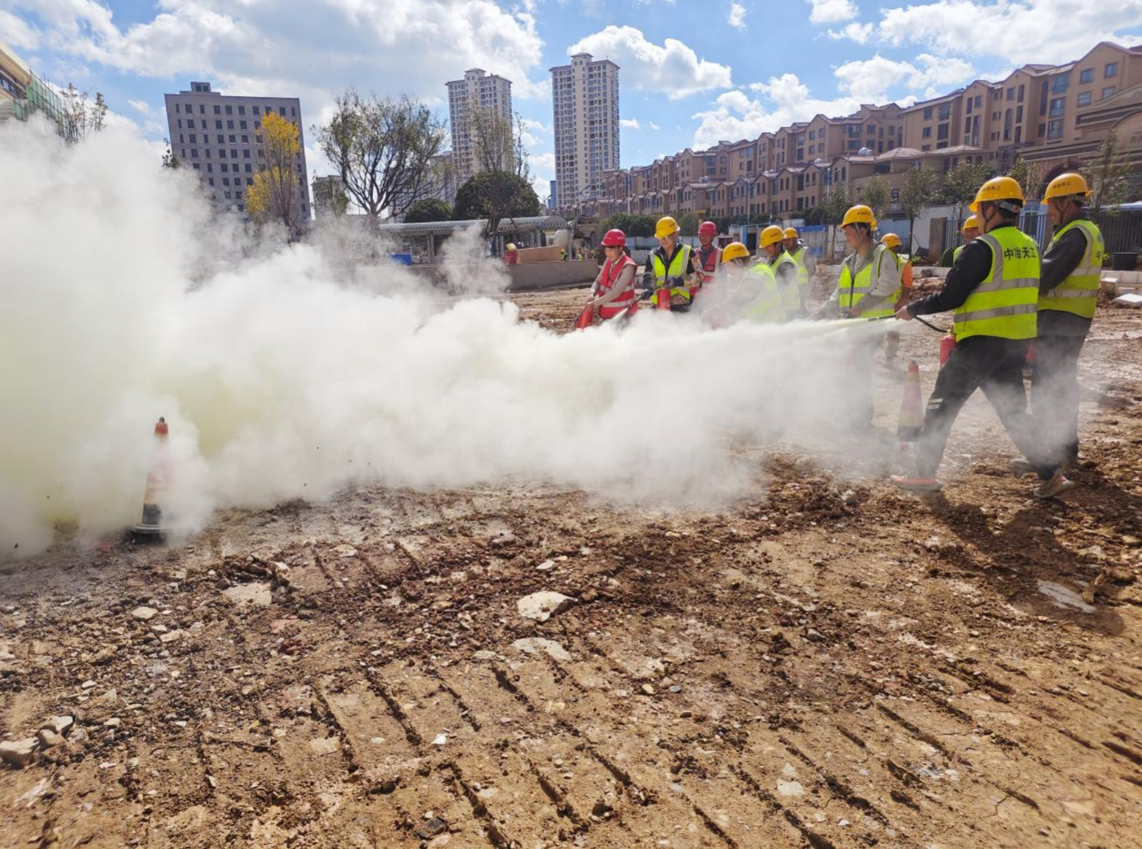 城廂區(qū)西許“專精特新”產(chǎn)業(yè)園項(xiàng)目、濱州康怡小區(qū)安置區(qū)項(xiàng)目、峨眉山市第二批次安置房(一期)建設(shè)項(xiàng)目、峨眉南山鄉(xiāng)村振興示范基地建設(shè)項(xiàng)目、鹽亭縣原綠神絲綢地塊開發(fā)項(xiàng)目、曲靖市麒麟?yún)^(qū)第二人民醫(yī)院建設(shè)項(xiàng)目集中開展消防應(yīng)急演練。隨著消防警報(bào)響起,演練正式拉開帷幕,全體員工迅速反應(yīng),按照預(yù)定的疏散路線,有序快速地撤離到安全地帶。演練過程處置得當(dāng)、井然有序,演練現(xiàn)場(chǎng)感強(qiáng)烈,檢驗(yàn)了項(xiàng)目部協(xié)同配合處置火災(zāi)突發(fā)事件的能力,增強(qiáng)了職工對(duì)應(yīng)急預(yù)案執(zhí)行程序的了解和實(shí)際操作技能,提高了施工現(xiàn)場(chǎng)全員的應(yīng)變能力和自救能力,為有序開展安全生產(chǎn)工作奠定了良好基礎(chǔ)。