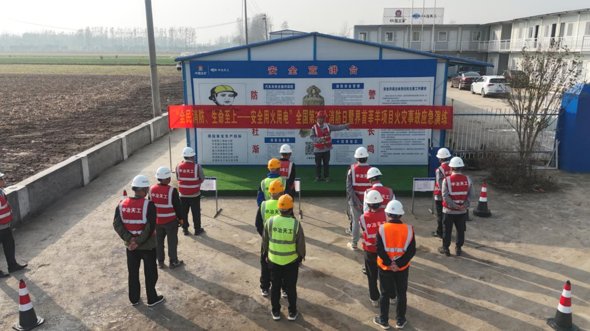 秋去冬來、天干物燥,中原公司安徽界首市莘羊繁育基地項目進入冬季消防安全關鍵時期。11月9日是第34個全國消防日,為進一步增強全員消防意識與實戰(zhàn)應對能力,項目部圍繞“全民消防、生命至上——安全用火用電”主題,組織開展火災事故應急演練,全面筑牢冬季安全生產(chǎn)防線。