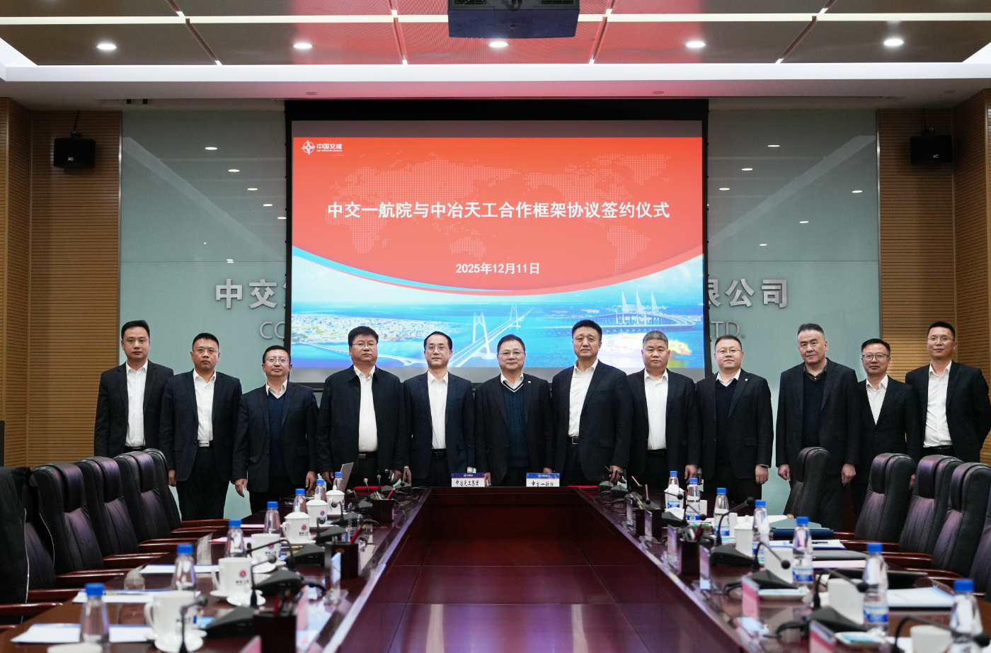 中交一航院國內(nèi)市場經(jīng)營事業(yè)部總經(jīng)理邵旭、港航事業(yè)部總經(jīng)理隋吉林、城鄉(xiāng)事業(yè)部總經(jīng)理李艷群、新能源事業(yè)部總經(jīng)理申立明;中冶天工有關(guān)人員楊永明等參加會談。