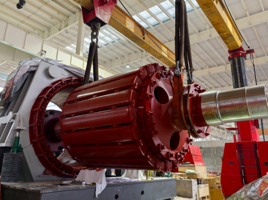 作為重慶市2025年重大項目之一,建成后將有效?促進區域經濟發展與產業升級,助力當地產業結構優化升級。此次吊裝任務極具挑戰性,R2主電機轉子重85.6噸,定子重48.1噸,且主電機穿芯受行車起重能力制約,同時現場空間受限,給吊裝施工帶來了不小的技術難題。