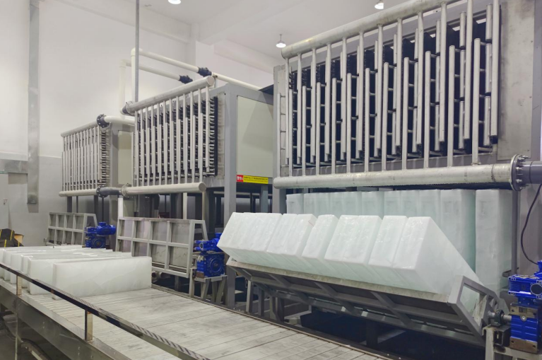 為確保推進(jìn)制冷機(jī)組安裝施工,項目部組織實地考察島內(nèi)各個港口已建成制冰廠,綜合了解制冰工藝和不同種類制冰機(jī)組間的差異,并將成品冰運(yùn)回至施工現(xiàn)場實際試驗融冰速率,配合建設(shè)單位確定制冰工藝及種類。施工過程中,項目部詳細(xì)劃分工期節(jié)點,科學(xué)組織材料設(shè)備進(jìn)場,嚴(yán)格落實安全技術(shù)交底,在保證施工安全與工程質(zhì)量的基礎(chǔ)上,穩(wěn)步推進(jìn)制冷機(jī)組安裝施工各項工作,為制冰系統(tǒng)調(diào)試運(yùn)行提供了堅實保障。