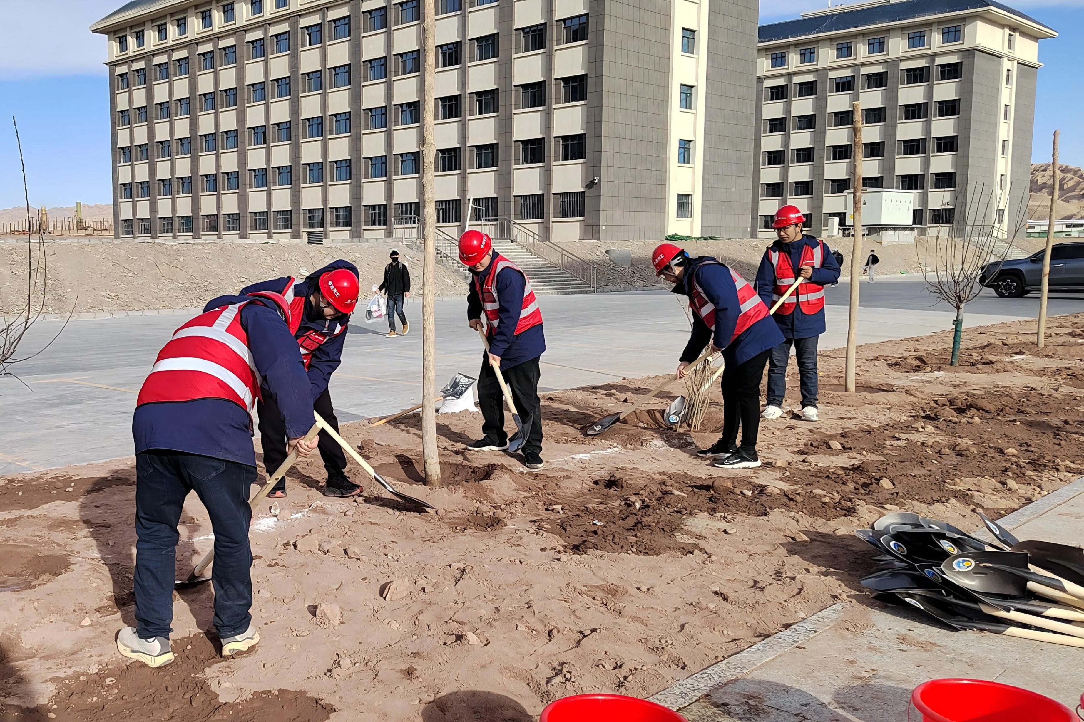 春風(fēng)拂暖,萬物向陽。活動現(xiàn)場,黨員、團(tuán)員青年化身“植綠使者”分工協(xié)作,揮鍬鏟土、扶苗培坑、澆水灌溉,用雙手為新建廠區(qū)增添新綠,用汗水澆灌希望之苗。此次植樹節(jié)活動,既是踐行“綠水青山就是金山銀山”理念的具體實踐,也是發(fā)揮黨員先鋒模范作用、凝聚團(tuán)員青年力量的生動體現(xiàn)。通過開展活動,進(jìn)一步美化了廠區(qū)生態(tài)環(huán)境,營造了“人人愛綠、人人護(hù)綠、人人植綠”的良好氛圍,同時將“扎根實干、向上生長”的植綠精神,轉(zhuǎn)化為推動項目建設(shè)、助力興業(yè)興疆的強(qiáng)大動力。